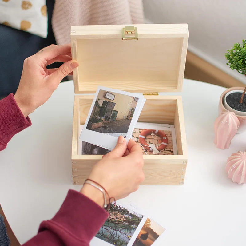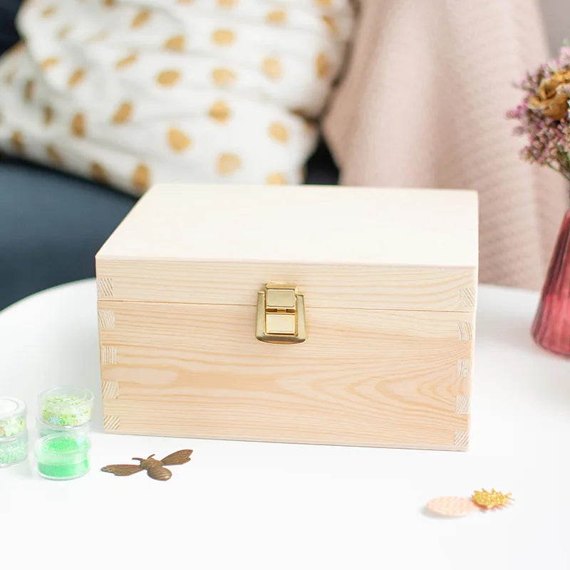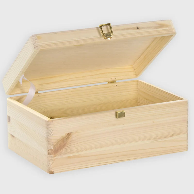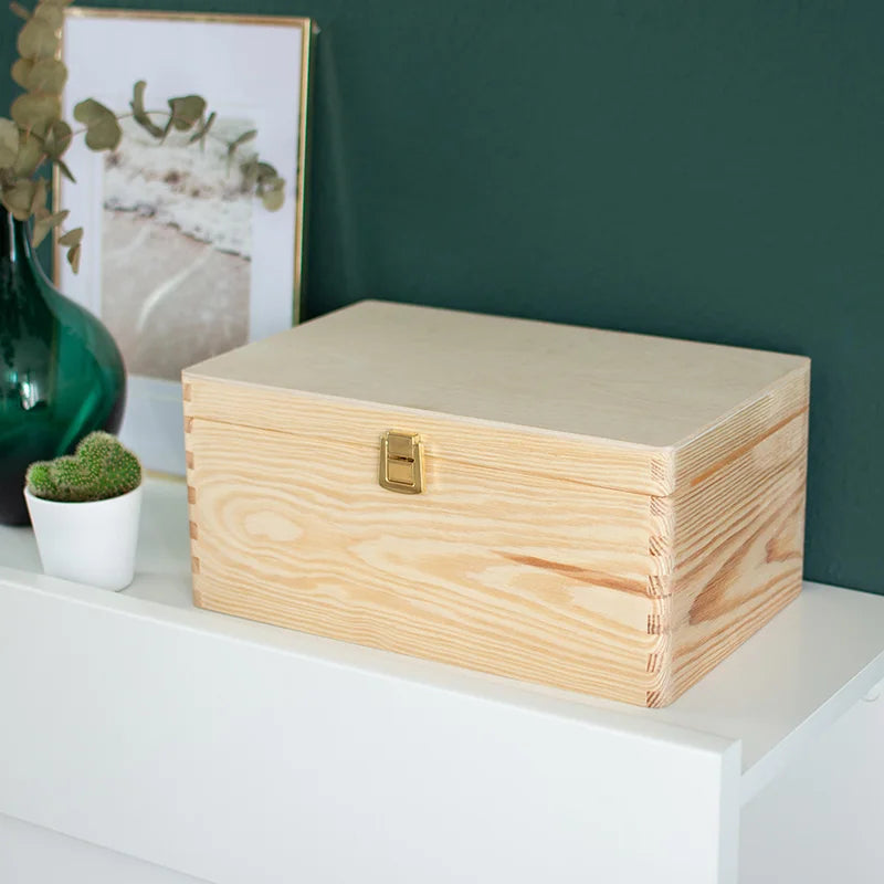 Boîte en bois avec couvercle et fermeture en métal – S/M/L/XL - Naturel – Coffret de rangement, FSC®