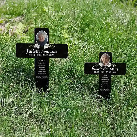 Offrez un dernier hommage empreint de respect et d’émotion. Commandez dès aujourd’hui votre croix funéraire personnalisée et créez un symbole durable pour honorer et préserver la mémoire de votre proche.