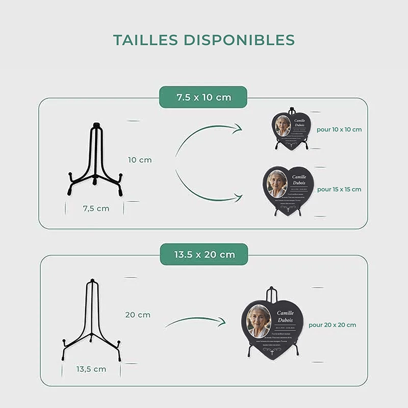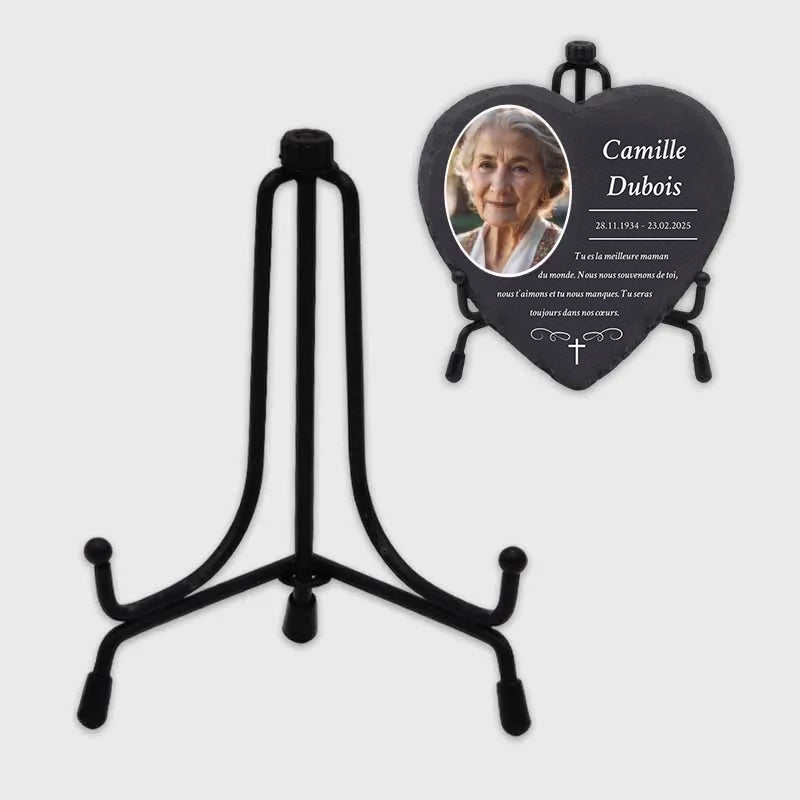 Garder la mémoire de nos proches vivante est, pour beaucoup, une question de cœur. Un support en métal pour pierre tombale en forme de cœur joue un rôle essentiel, car il permet de fixer la plaque funéraire en toute sécurité et de la placer dans un endroit digne. Que ce soit dans le jardin, sur un lieu de commémoration privé ou à l'intérieur, un support adapté pour pierres tombales permet de créer un espace de mémoire très personnel.